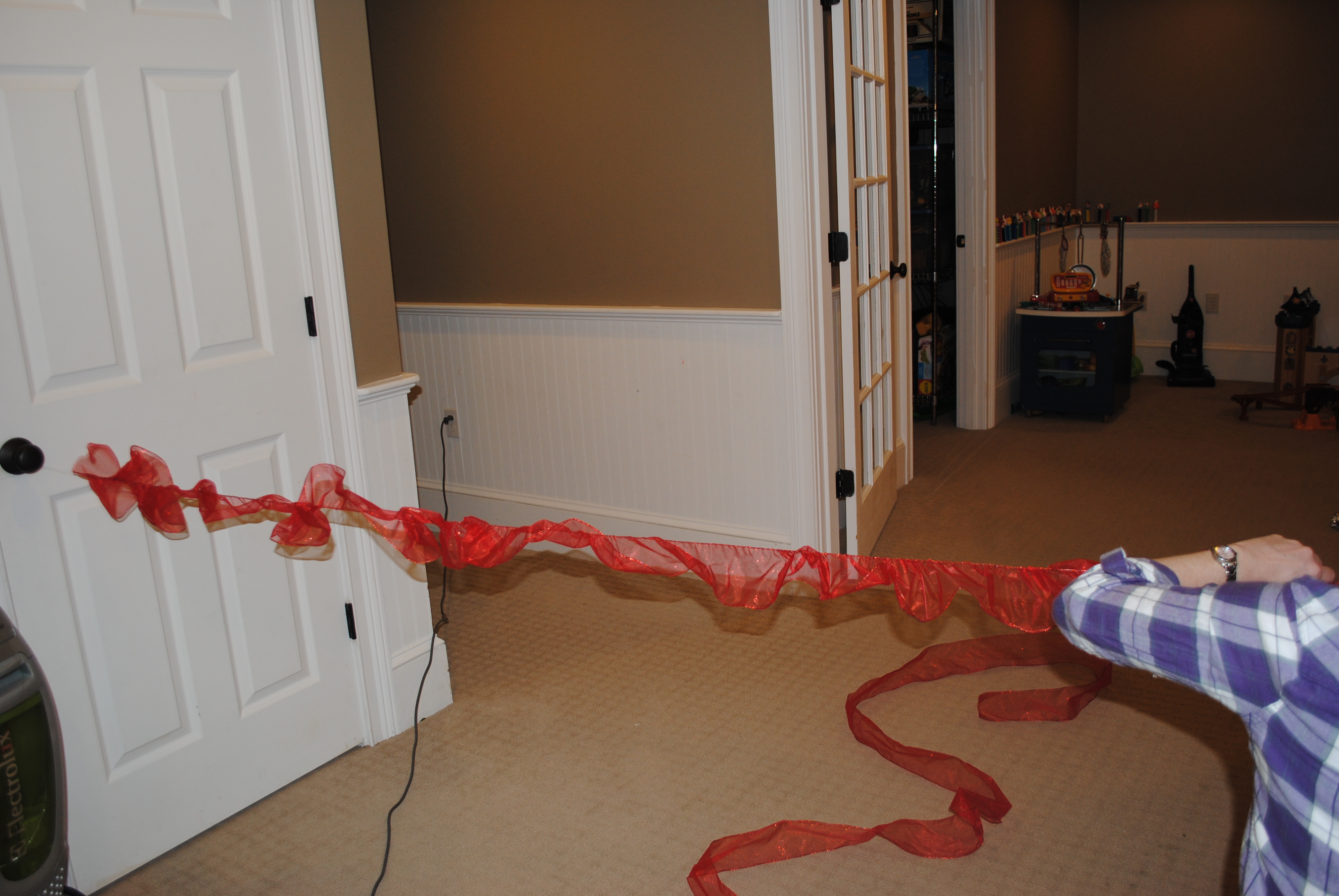As you get closer to the end you may find yourself lost in a sea of ruffles. I found it easier to judge the look of my ruffle by tying one end to a doorknob at this point.